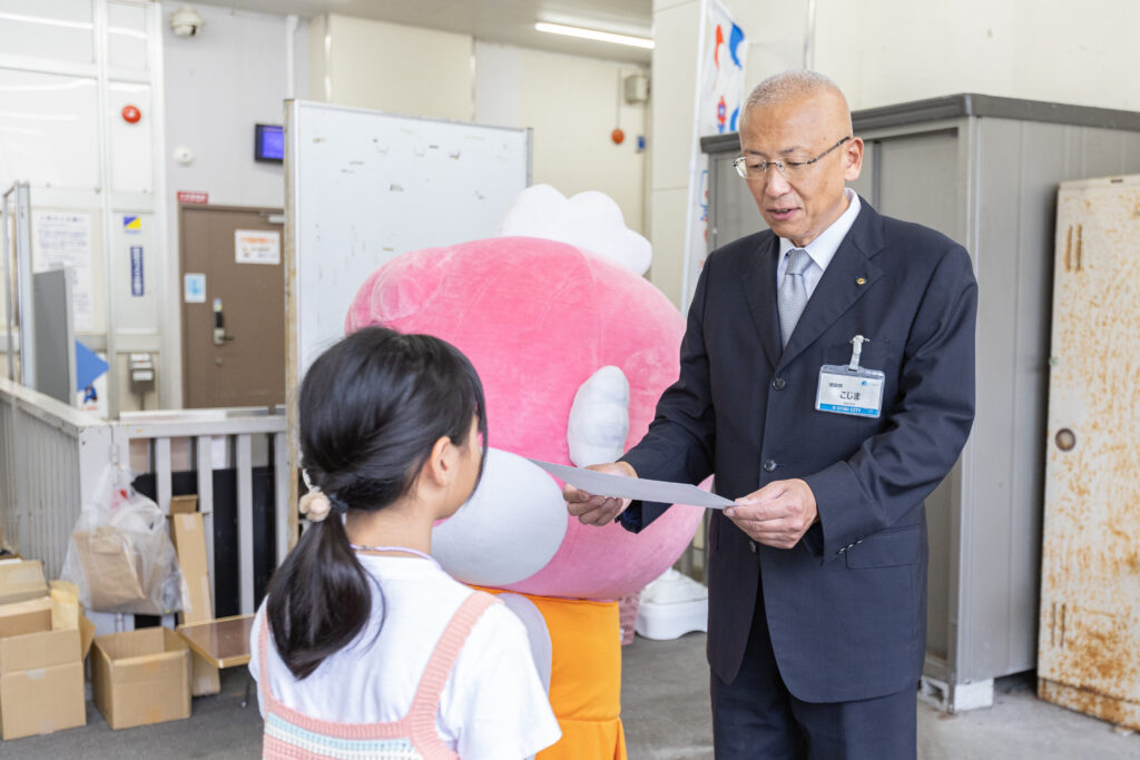 大使バッジも受け取り、朝一番に遊びに来てくれたお子さんたちと一緒にチャッフィーとのショットを撮ったよ!