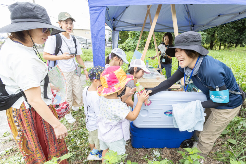 ”相撲”がテーマとなっている面白い公園で、大使にドリンクのプレゼント。志賀駅からの道の途中の景色がキレイ!そんな発見をしてくれる大使や、大きな滑り台が楽しくて何度も何度も楽しむ大使も続々でした。(ドリンク:株式会社SAWAMURA様提供)